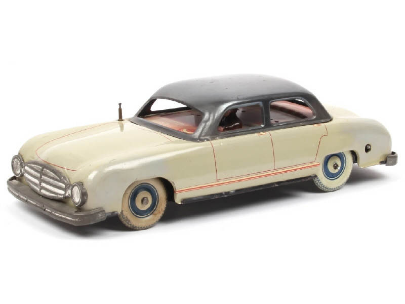 longueur : 31 cm - avec moteur à clef (fonctionne) & direction - antenne non d'origine - importantes retouches d'usine sur les ailes - parties chromées ternies - quelques frottements par endroits (notamment sur le toit)