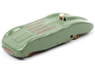longueur 38 cm - avec moteur à clef (à revoir) & direction - fixation de la tête du pilote non d'origine & repeinte - éclats plus ou moins importants par endroits dont certains majeurs - pneus séchés & craquelés - importantes traces d'oxydation sous le modèle par endroits