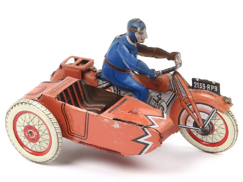SFA PARIS (FRANCE) Moto avec side-car en tôle lithographiée rouge & bleu