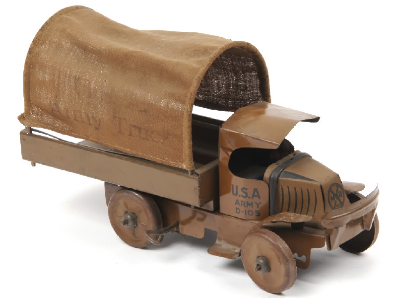 MARX TOYS (USA) D-105 MACK Camion plateau à ridelles bâché 'U.S.A ARMY TRUCK' marron & noir