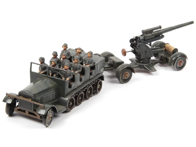 longueur de l'ensemble : 47 cm - avec moteur à clef (fonctionne), direction, système à amorce & 9 soldats en composition
