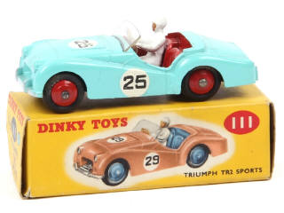 DINKY TOYS (GB) 111 TRIUMPH TR2 de compétition turquoise, intérieur & jantes rouges