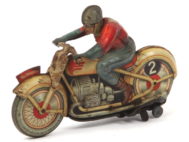 TECHNOFIX (ALLEMAGNE) GE255 Moto en tôle lithographiée crème, rouge & gris