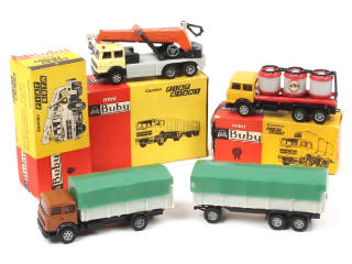 comprend les modèle : 619N1 avec remorque (éclats sur un passage de roues), 697N (2 exemplaires différents dont un avec éclats sur l'attache de remorque) - une boite en état 'c'