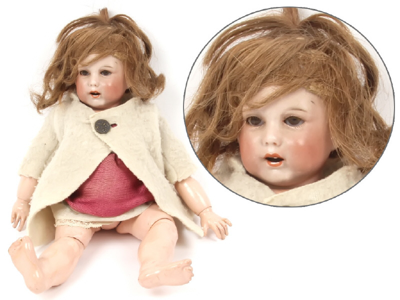 taille (32 cm environ) - marquages 'SFBJ 251 PARIS 4' - tête en biscuit (fêle sur le haut du front) - yeux marron dormeurs (quelques cils manquants) - corps articulé en composition (quelques rares séclats, inscription au dos) - un doigt cassé & manquant - avec calotte, perruque en mohair & vêtements anciens