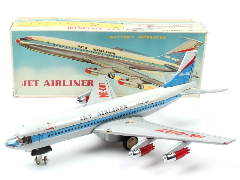 M.E. (CHINE) 087 Avion de ligne 'JET AIRLINER' en tôle lithographiée blanc, bleu ciel & gris métal
