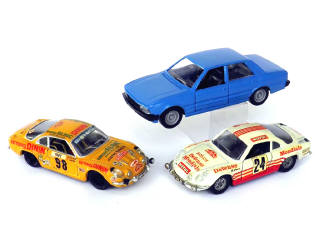 comprend Ref 181 ALPINE A110 Rallye de Monte Carlo 1976 n°24 (décoration complète posée), Ref 181K ALPINE A110 Rallye de Monte Carlo 1977 n°98 (décoration complète posée) & Ref 1312 PEUGEOT 505 (couleur exclusive RECORD)