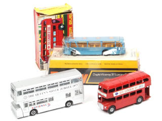 comprend : DUPLE VICEROY 37 LUXURY COACH (blister de boite légèrement abîmé), ATLANTEAN (sans boite) & ROUTEMASTER 'SEE LONDON BY BUS' (boite en état 'c') - on y retrouve les marques : DINKY TOYS & LONE STAR