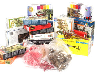 différentes échelles & composition - on y retrouve notamment les marques : BRITAINS, OUGEN, ITALERI, WATERLOO, ARMIES IN PLASTIC, IMEX & ORION - quelques exemplaires en sachet - avec manques