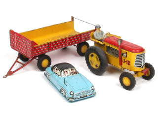 états de 'C' à 'D' - comprend : tracteur agricole J12 avec remorque & MERCEDES coupé - moteurs à revoir - traces d'oxydation plus ou moins importantes avec manques