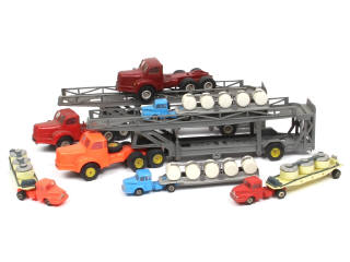 états de 'C' à 'D' - différentes échelles - comprend : BERLIET transport d'autos, UNIC transport de cuves, citerne - on y joint un tracteur routier BERLIET TBO 15 - - avec manques, parties plus ou moins encrassées & cassées