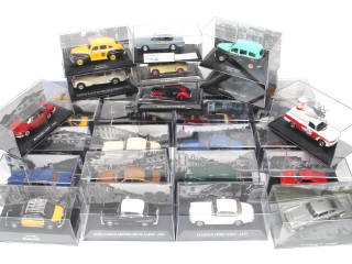 modèles vendus en kiosque - miniatures reproduisant notamment les modèles : PANHARD, DELAHAYE, HOTCHKISS, RENAULT, BUGATTI, FACEL VEGA - quelques fêlures sur les couvercles de boîtes