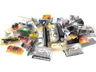 différentes échelles - certains modèles vendus en kiosque - états de 'A' à 'C' - miniatures reproduisant notamment les modèles : PEUGEOT, CADILLAC, MITSUBISHI, FERRARI, FORD, TOYOTA & BUGATTI - on y retrouve notamment les marques : SOLIDO, NOREV, CORGI TOYS & CARARAMA - possibilité de petits accessoires manquants - les boites sont en état de 'b' à 'd' dont certaines non conformes