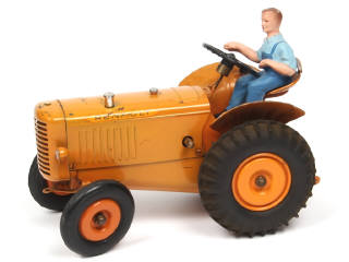 longueur 19,5 cm - avec moteur à clef (fonctionne), conducteur & direction par le volant - quelques éclats majeurs sur la partie supérieure de la carrosserie (état 'D' avec traces d'oxydation par endroits) - décalques incomplets - quelques éléments non d'origine (notamment le volant & la sortie d'échappement ...) & d'autres manquants