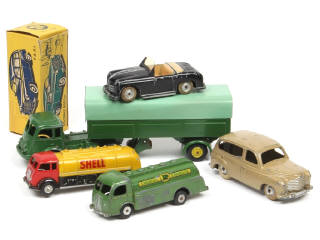 2 exemplaires motorisés (à revoir) - comprend : R DE ROVIN (pare-brise incomplet), PANHARD citerne 'BP', RENAULT citerne 'SHELL', SAVANE (en boîte état 'c') & 120 CV semi-remorque bâché (manque logement & roue de secours) - quelques traces d'oxydation plus ou moins importantes par endroits