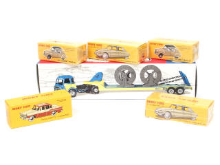 comprend : CITROEN DS19 (2 exemplaires), 2cv (2 exemplaires), SIMCA CHAMBORD & SAVIEM LRS semi-remorque surbaissée transport de câbles - on y retrouve les marques : EDITIONS ATLAS & C.I.J/NOREV - 4 exemplaires sous fim jamais ouvert