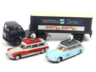 comprend : UNIC semi-remorque fourgon 'PAM-PAM' (quelques traces d'oxydation sur l'attelage de remorque), CITROËN ID 'ORTF' & 'RTL' - avec accessoires - quelques marquages de peinture sur les planchers