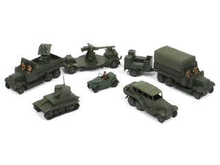DINKY TOYS (GB) Ensemble de 5 véhicules militaires & 2 remorques