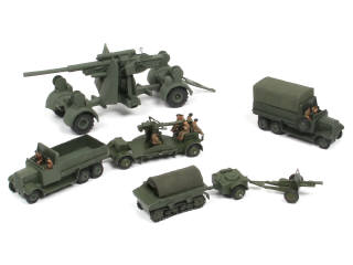 DINKY TOYS (GB) Ensemble de 3 véhicules militaires, une remorque & 3 canons