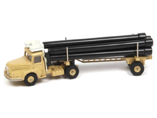 DINKY TOYS (FRANCE) 893 UNIC Saharien transport de pipe-lines (version avec jantes convexes & remorque ajourée) sable & blanc