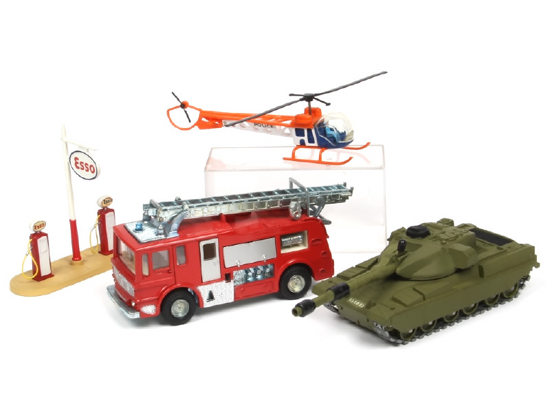 DINKY TOYS (GB) Ensemble de 3 véhicules & un poste de ravitaillement