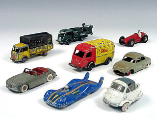 états de 'D' à 'F' - miniatures reproduisant les marques : RENAULT, SIMCA, PANHARD, FERRARI, FORD & ISETTA - on y retrouve les marques : DINKY, CIJ, QUIRALU & NOREV