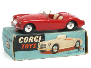 CORGI TOYS (GB) 302 MGA Cabriolet rouge, sièges crème