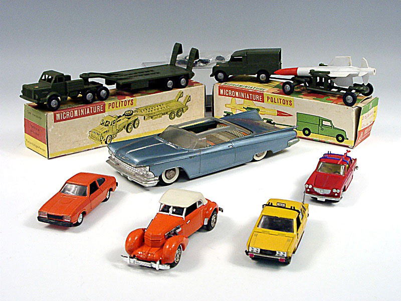 états de 'A' à 'F' - miniatures reproduisant les marques : FIAT, FORD, LANCIA, CORD, LAND ROVER & MIGHTY ANTAR - on y retrouve les marques : POLITOYS, MERCURY, LUSO-TOYS, DUGU & GAMA - les 2 ensembles militaires sont en boîte