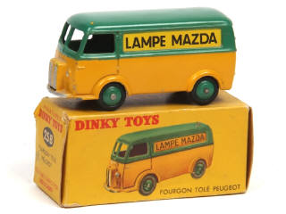 DINKY TOYS (FRANCE) 25B PEUGEOT D3A 'LAMPE MAZDA' vert & jaune