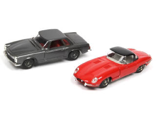 carrosseries en 'FIBRE GLASS' - comprend : MERCEDES 230 SL & JAGUAR TYPE spyder (manque autocollant de plaque minéralogique)