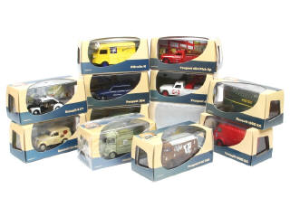collection 'LES PETITS UTILITAIRES FRANCAIS' - miniatures reproduisant les modèles : PEUGEOT, RENAULT, CITROEN & SIMCA