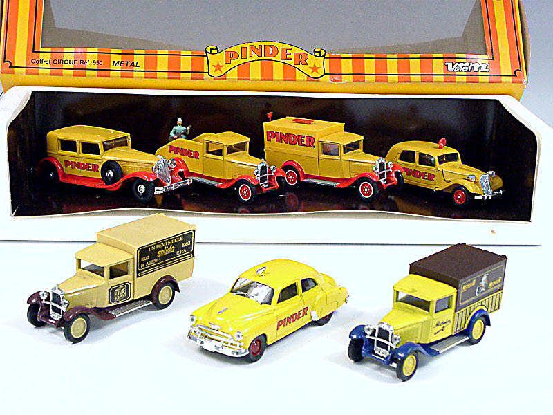 modèles reproduisant les marques : CITROËN, RENAULT & CHEVROLET - 4 modèles en coffret cadeau de marque VEREM - manque un panonceau de toit