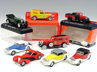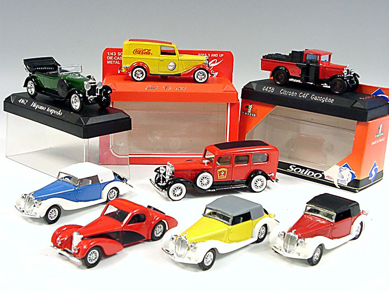 modèles reproduisant les marques : CADILLAC, DELAHAYE, BUGATTI, FORD, HISPANO & CITROËN - 3 modèles avec boîte