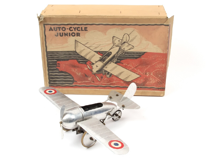 fabrication des années 1920 - maison fondée par Monsieur de ROQUEFORT-VILLENEUVE, le 10 janvier 1920, à PARIS 14ème - dimensions du coffret : 32 X 22 X 10 cm - contient : différents éléments permettant la réalisation d'un avion (moteur à clef fonctionne) - avec notice & clef - possibilité de petits accessoires manquants