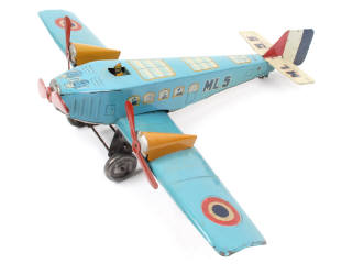 M.L. (FRANCE) 55 Avion de ligne trimoteur en tôle lithographiée bleu, jaune, rouge & blanc