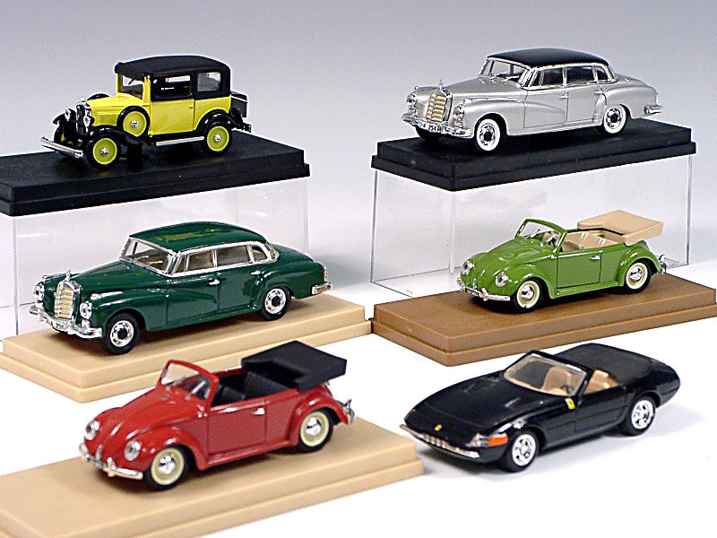 miniatures reproduisant les marques : MERCEDES, FIAT, FERRARI & VOLKSWAGEN - 5 modèles avec boîte