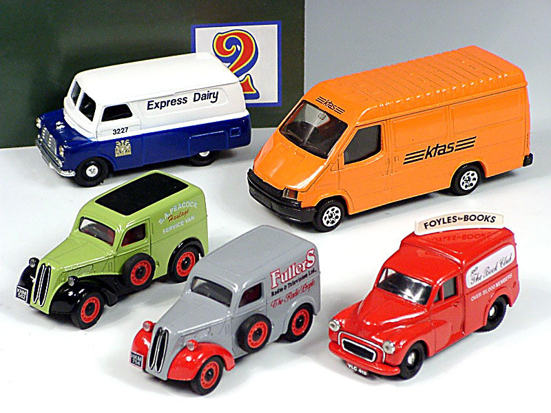 miniatures reproduisant les marques : MORRIS, FORD, FORDSON & BEDFORD - on y joint un catalogue