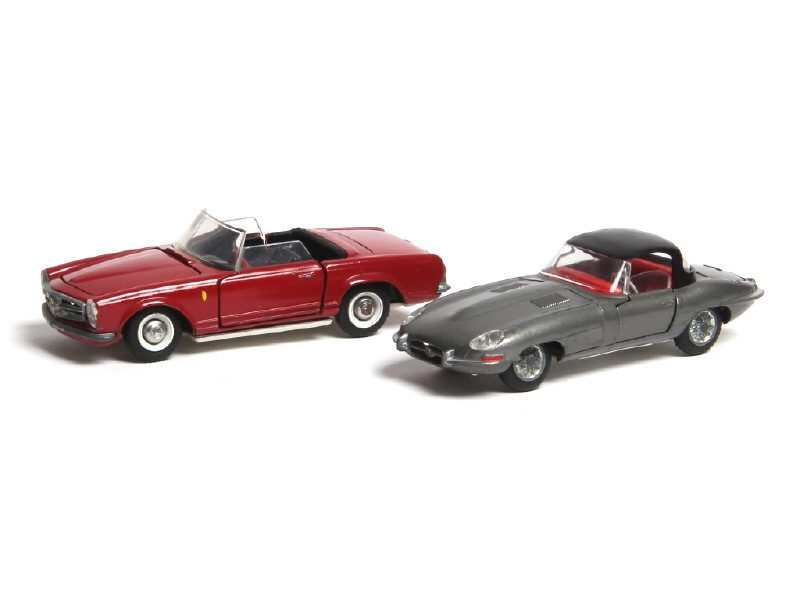 comprend : JAGUAR TYPE 'E' & MERCEDES 230SL (sans hard-top, carrosserie légèrement déformée) - pneus séchés