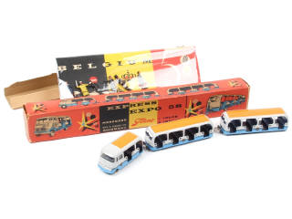 TEKNO (DANEMARK) 851 MERCEDES Minibus articulé à chariots bleu ciel, gris & orange