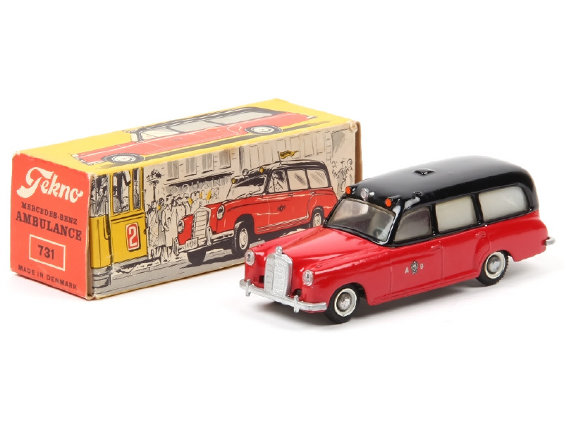 TEKNO (DANEMARK) 731 MERCEDES 220 S Ambulance 1957 rouge & noir