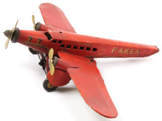 immatriculation : F-AKEK - envergure : 66 cm - moteur à ressort (fonctionne) - avec manques (dont dérive) - traces d'oxydation plus ou moins importantes par endroits - parties ternies