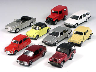 miniatures reproduisant les marques : VOLVO, ROLLS ROYCE, TOYOTA, ALFA ROMEO, CITROËN, VOLKSWAGEN & JEEP