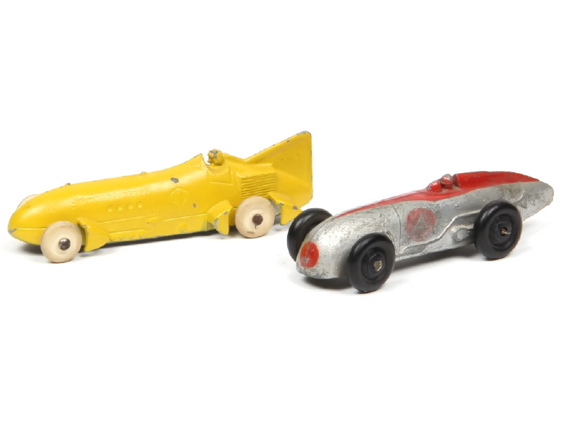 comprend : BLUEBIRD & auto de course - on y retrouve les marques : TOOTSIE TOYS & DINKY TOYS (GB) - petites traces d'oxydation sur les axes de roues