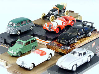 miniatures reproduisant les marques : FIAT, ALFA ROMEO, FERRARI, JAGUAR, RENAULT & MERCEDES - avec 4 suremballages carton