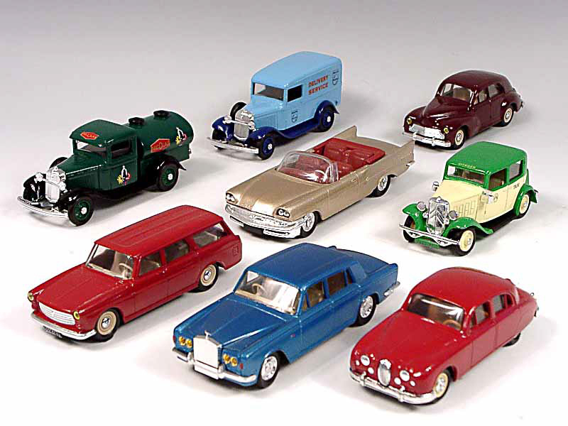 miniatures reproduisant les marques : FORD, PEUGEOT, CHRYSLER, JAGUAR, CITROËN & ROLLS ROYCE