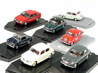 miniatures reproduisant les marques : FIAT, AUTOBIANCHI & ALFA ROMEO - on y retrouve les marques PROCETTO K & PINKO - avec 5 suremballages carton