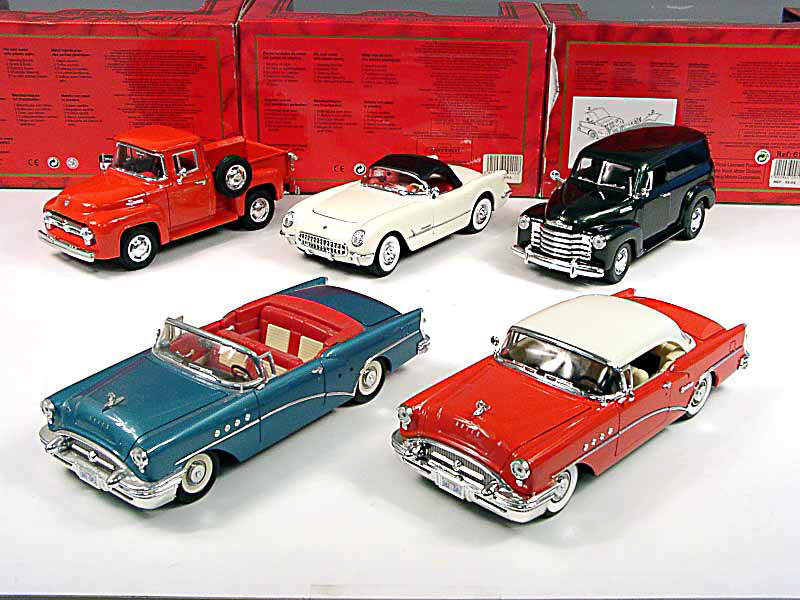échelle 1/18ème - miniatures reproduisant les marques : BUICK & CHEVROLET - 4 modèles avec boîte - manque un petit accessoire