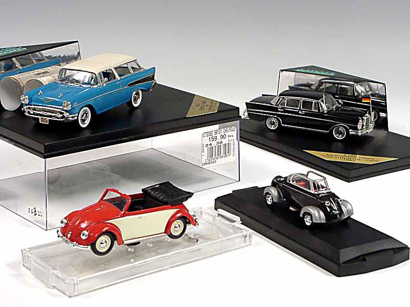 miniatures reproduisant les marques : CHEVROLET, MERCEDES, VOLKSWAGEN & MESSERSCHMITT - un modèle en édition limitée avec certificat 1867/2500 - avec un suremballage carton
