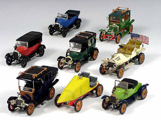 miniatures reproduisant les marques : FIAT, RENAULT, BIANCHI, THOMAS & GENERAL - une voiture avec métal fatigue