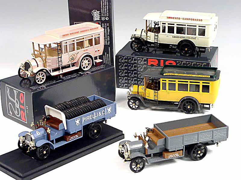 RIO (ITALIE) Ensemble de 3 autobus & 2 camions FIAT